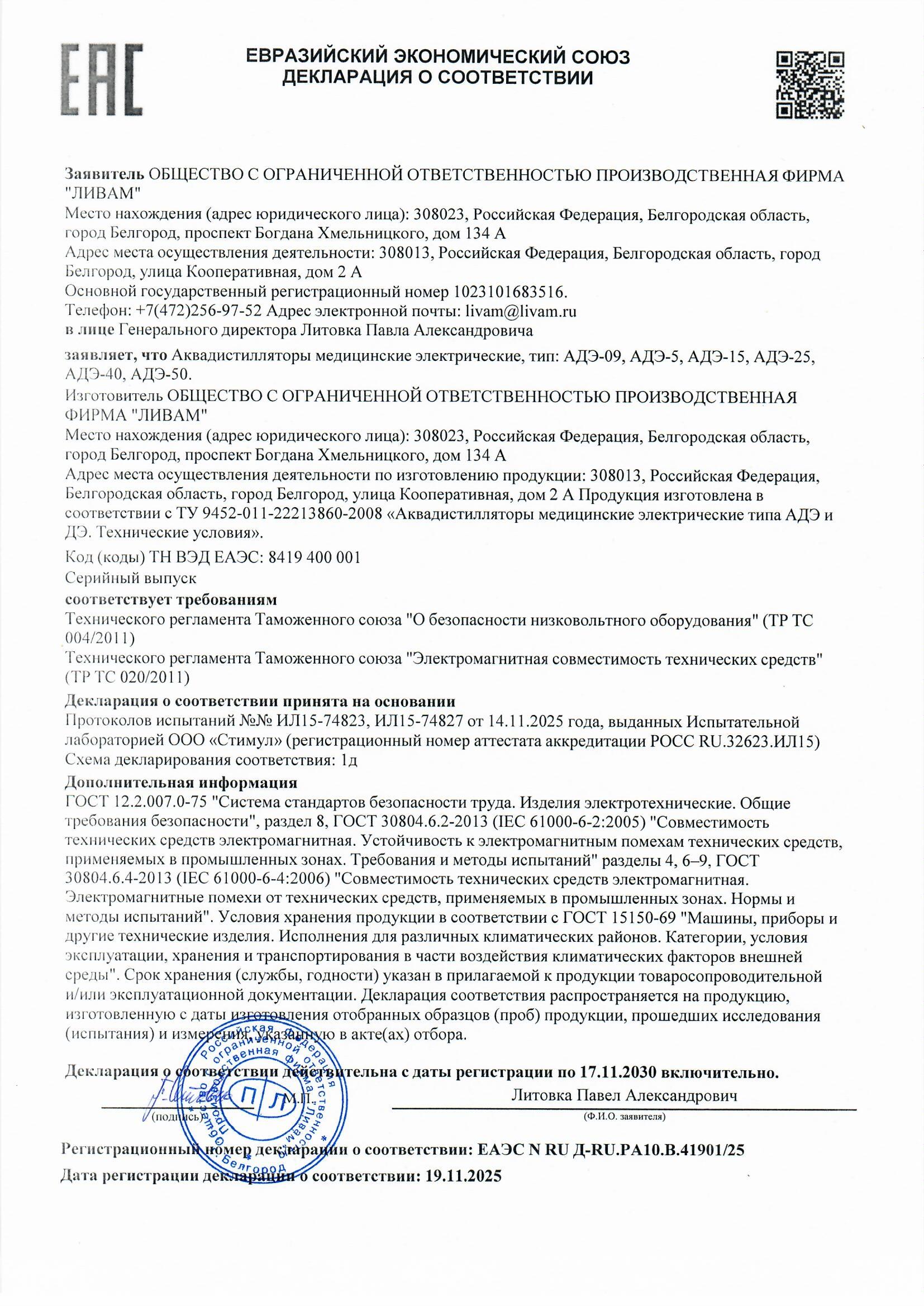 2026 © Дистиллятор, бидистиллятор ООО ПФ «Ливам»